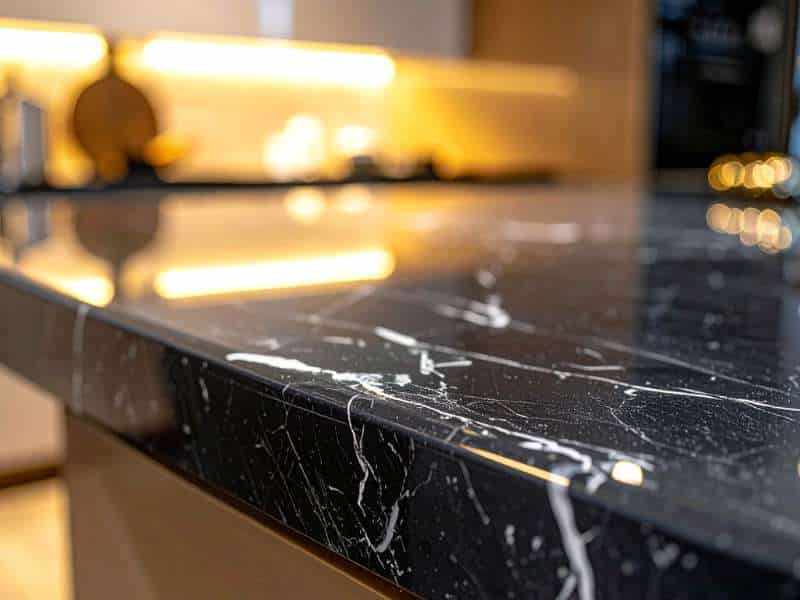 Bancada de cozinha gourmet feita de mármore escuro polido